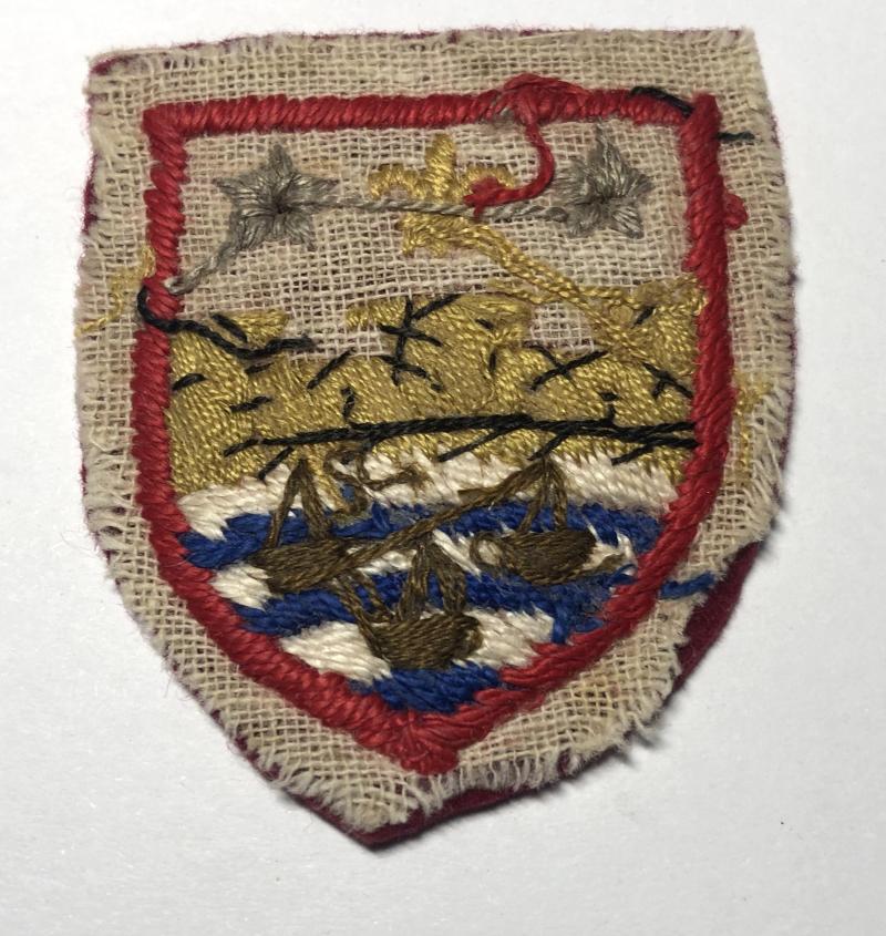 Good scarce maroon felt shield embroidered with the Arms of Cambridge.