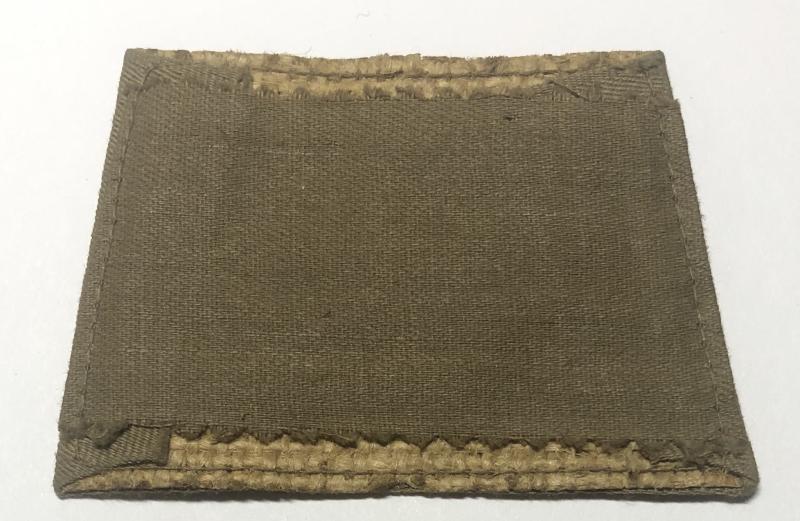 Good very scarce white embroidered coiled bugle over H.L.I. on light khaki material. Wide webbing tape fixing to reverse. (one of a facing pair)