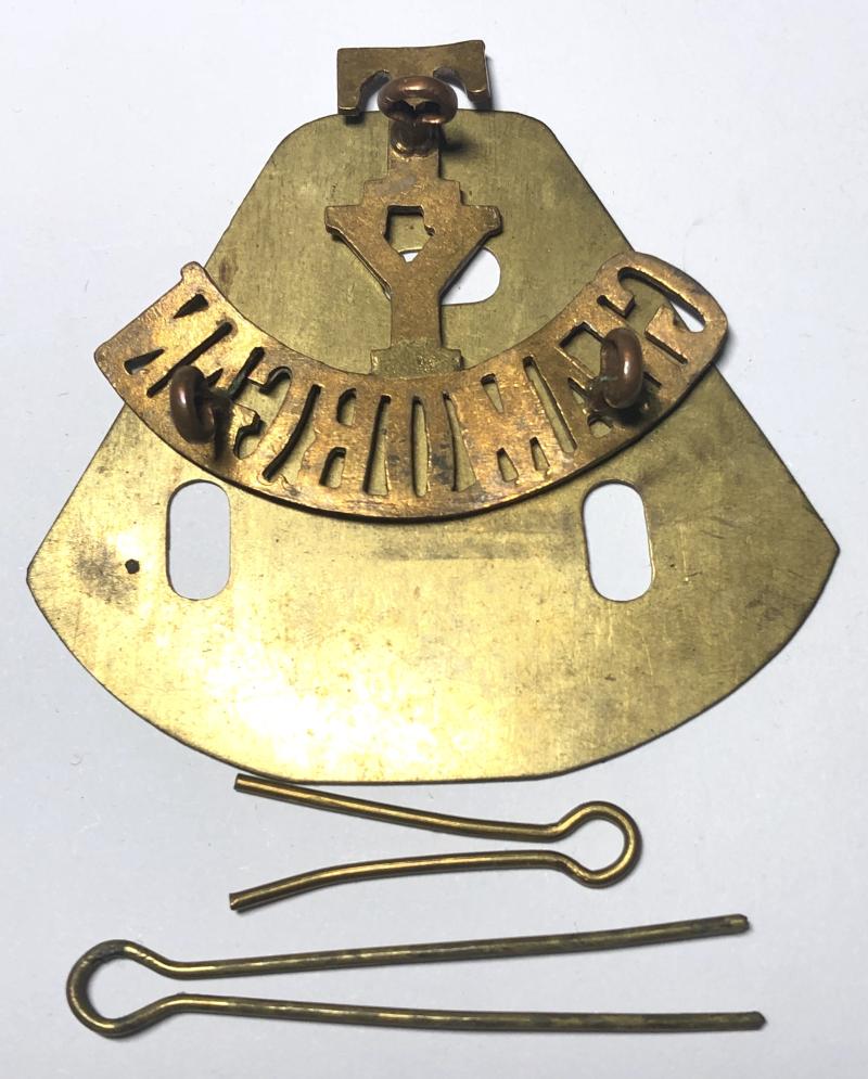 Good scarce die-cast example on three loops complete with brass backing plate and split pins.