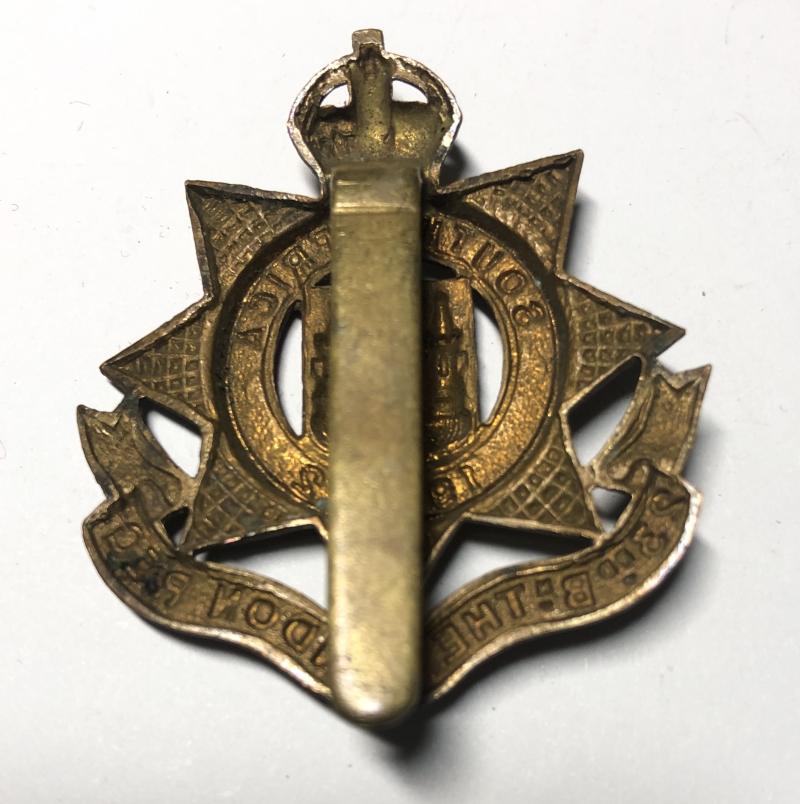 Good scarce die-stamped brass crowned circlet SOUTH AFRICA 1900-2 set on star resting on title scroll. Crimped slider. HQ at Clapham Junction