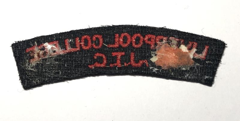 LIVERPOOL COLLEGE / JTC cloth shoulder title c. 1940-48.