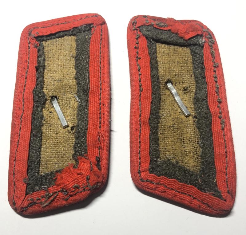 Good scarce field grey examples, with red Waffenfarbe, bearing aluminium skull and crossed bones (each now with single blade/prong)