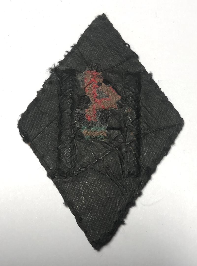 Good scarce 1940-44 example comprising dark blue diamond embroidered with green “H”; red “4” top of the “H”. Black paper backing, removed from uniform