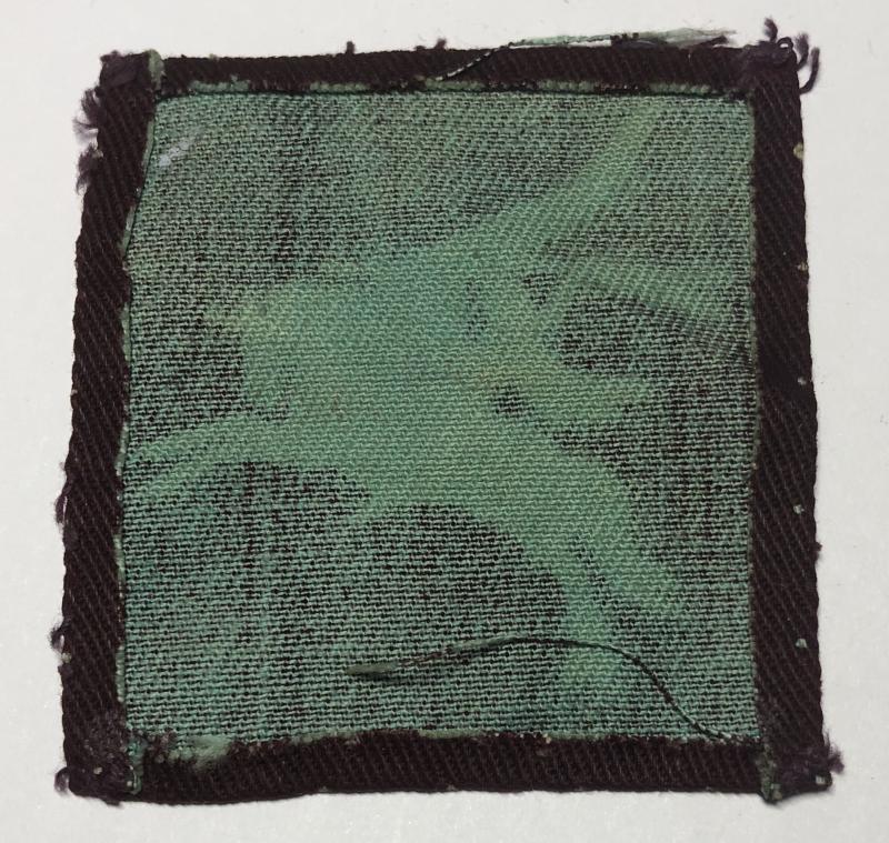 Good light blue Bellerphon astride Pegasus printed in light blue on maroon cotton rectangle. Removed from uniform