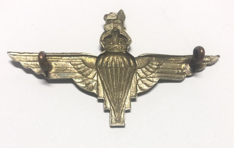 Good scarce die-stamped white metal crowned winged parachute canopy surmounted by the Royal Crest. Non-voided crown. Loops. Minor service wear.