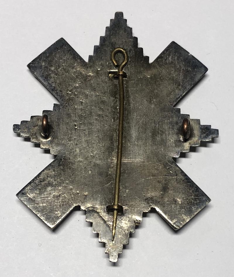 Good scarce die-cast die-cast bi-metal example with scrolls; detachable overlay (lacesset). Loops