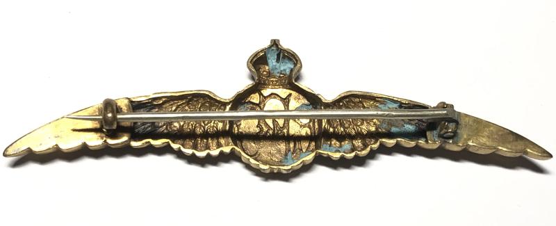 Good rare full size die-stamped gilt example fitted with pin and securing hook mounted on plates to wing tip reverse. Some wear to gilt finish, minor verdigris to reverse.