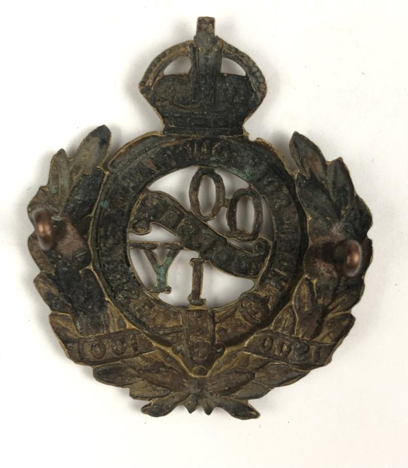 Good scarce die-stamped bass crowned Garter resting in laurel sprays bearing South Africa honour; QO/DORSET/IY to voided centre. Loops.