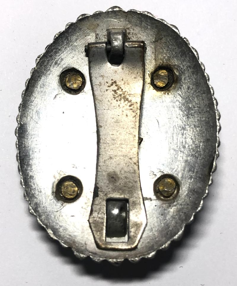 Good scarce dished aluminium lobed oval mounted with brass Chrysanthemum wreath and central five pointed star. Reverse retaining hasp and staple.