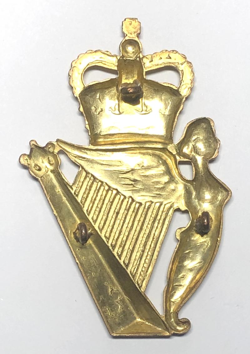 A good Elizabeth II large die-cast gilt crowned Maid of Erin Harp retaining three loops.