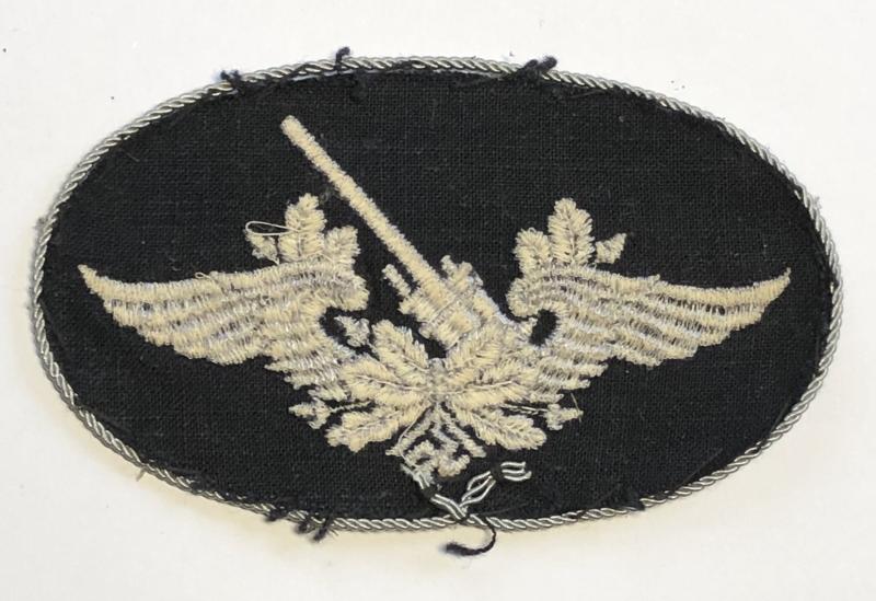 Good oval grey woolen cloth example embroidered with an 88 mm Flak gun ornamented with oak, Twist aluminium wire boder. Remove from uniform. Minimal old moth.