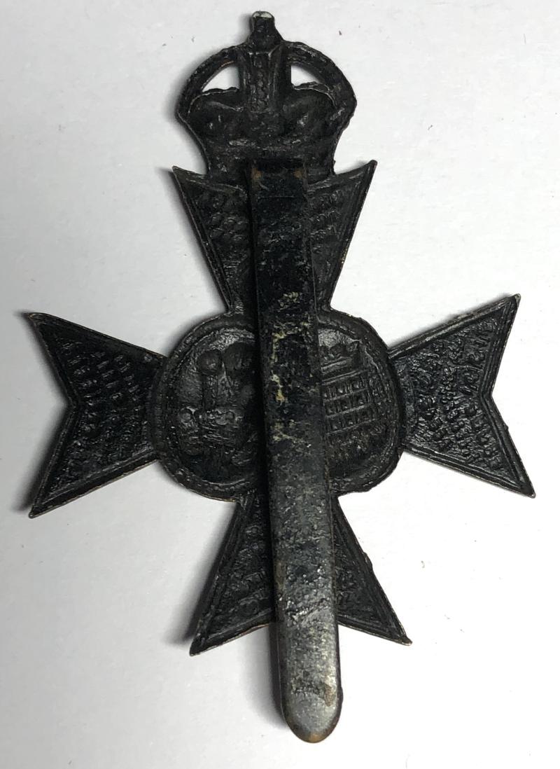 Good scarce die-stamped blackened brass rowned Maltese cross bearing crowned conjoined ovals to centre. Long slider.