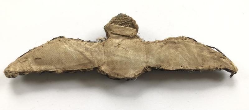 Good rare elegant pair of padded bullion pilot wings. Retaining cream paper backing. Removed from a uniform, bullion dulled otherwise very fine.