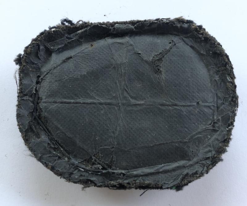 Good scarce bullion embroidered and crimson velvet crown in laurel wreath on black padded oval. Removed from uniform.
