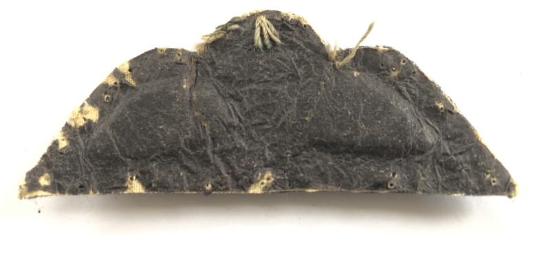 Fine rare padded silver wire parachute flanked by light blue wings heavily embroidered on black cloth. Removed from uniform.