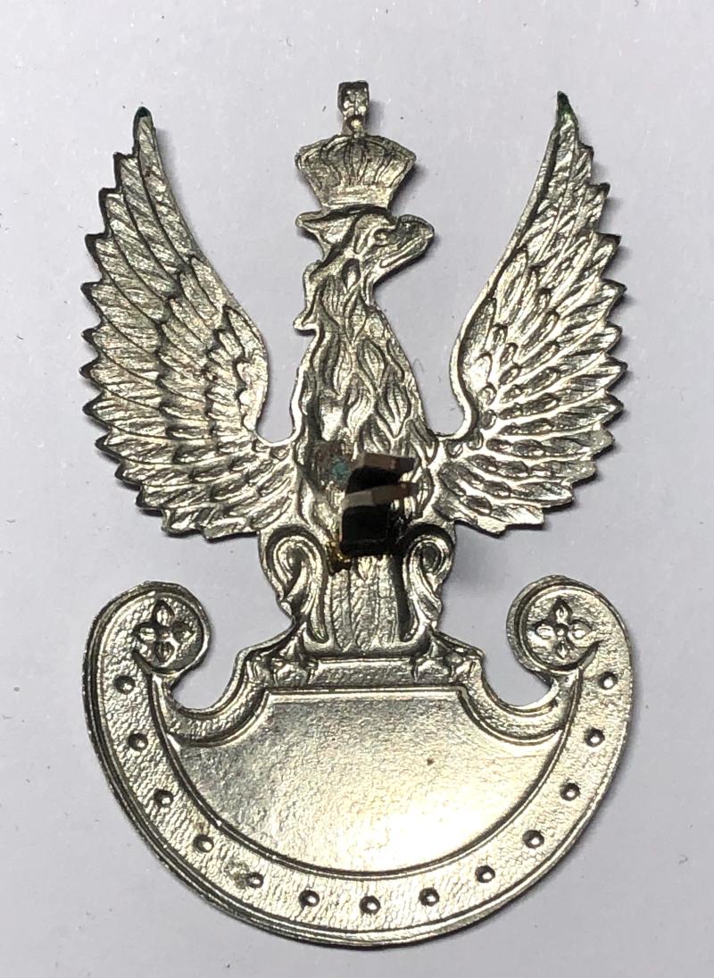 Good scarce British made die-stamped white metal lightly domed crowned eagle on Amazon shield bearing 13 nails. Double blade central fixing.Near pristine.