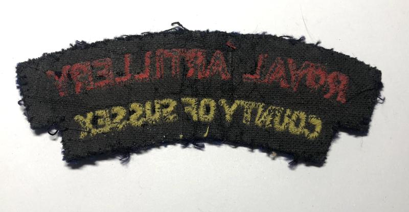 Good scarce blue felt issue embroidered with red and yellow letters. Removed from battledress