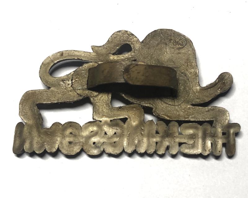 Good scarce lion atop THE KING'S OWN retaining both brass blades. Some distortion.