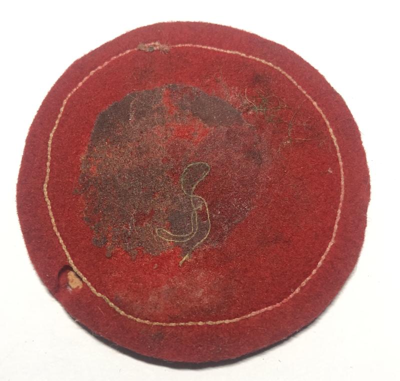 Good scarce early variation. Stiff red felt disc bearing off white disc sewn with red felt Jerboa. Old moth hole to reverse. Served in Western Desert, Burma and Italy.