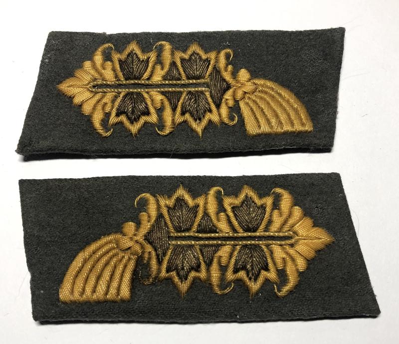 Fine rare rectangular grey felt matching facing pair heavily embroidered in yellow and gold wire thread.