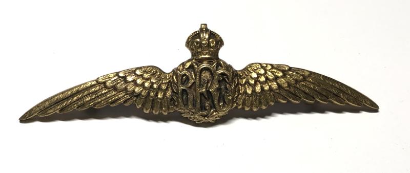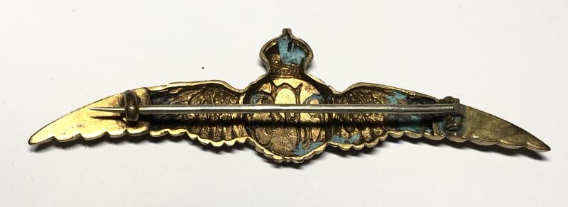 Good rare full size die-stamped gilt example fitted with pin and securing hook mounted on plates to wing tip reverse. Some wear to gilt finish, minor verdigris to reverse.