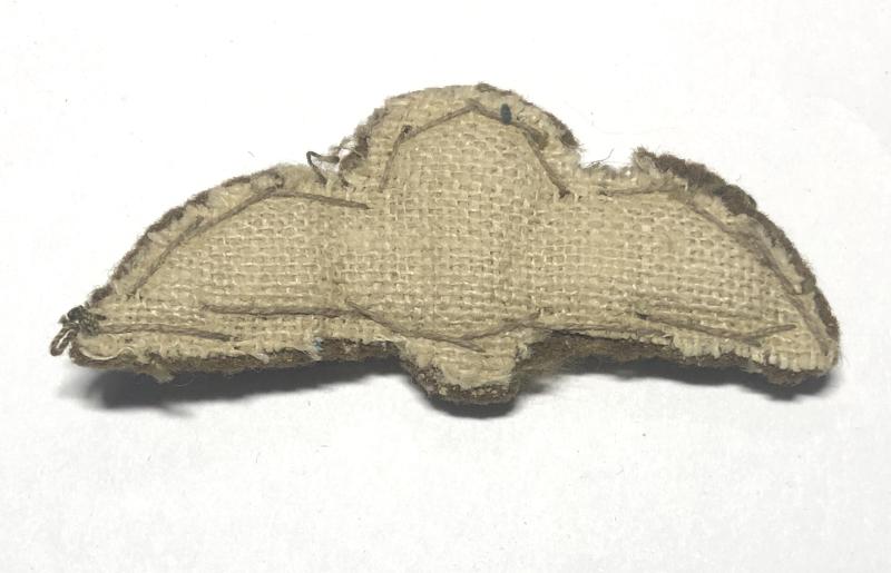 Good scarce padded example of white canopy flanked by blue wing with central fleck embroidered on khaki felt. Removed from Battledress
