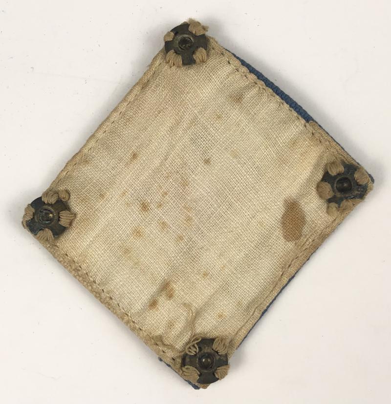 Good scarce red star and aeroplane printed on blue and white vertically divided diamond. White cotton backing with four press studs. Removed from uniform