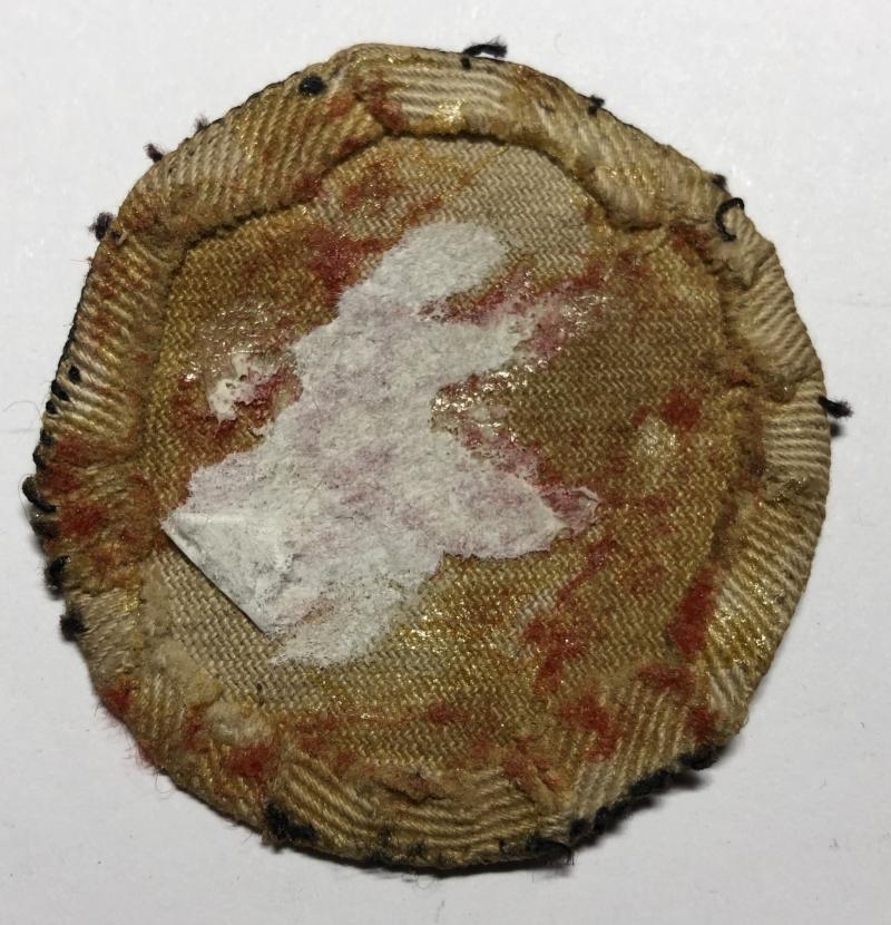 Good scarce black liver bird with olive branch in beak printe on black edged white felt disc. Removed from uniform.