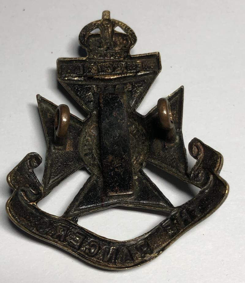 Good scarce1st pattern die-stamped blackened bras crowned Maltese cross on THE RANGERS scroll. Manufacturer's support to reverse. Loops