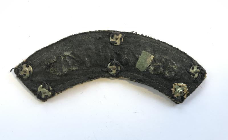 Good scarce red letters embroidered on green felt. Reverse with six press studs, Removed from uniform, minor service wear,
