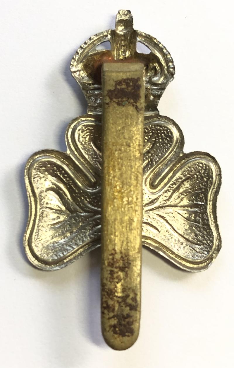 Good scarce die-stamped white metal crowned shamrock, bearing Hand of Ulster, on slider. Raised in Belfast in September 1914 from Belfast Volunteers.