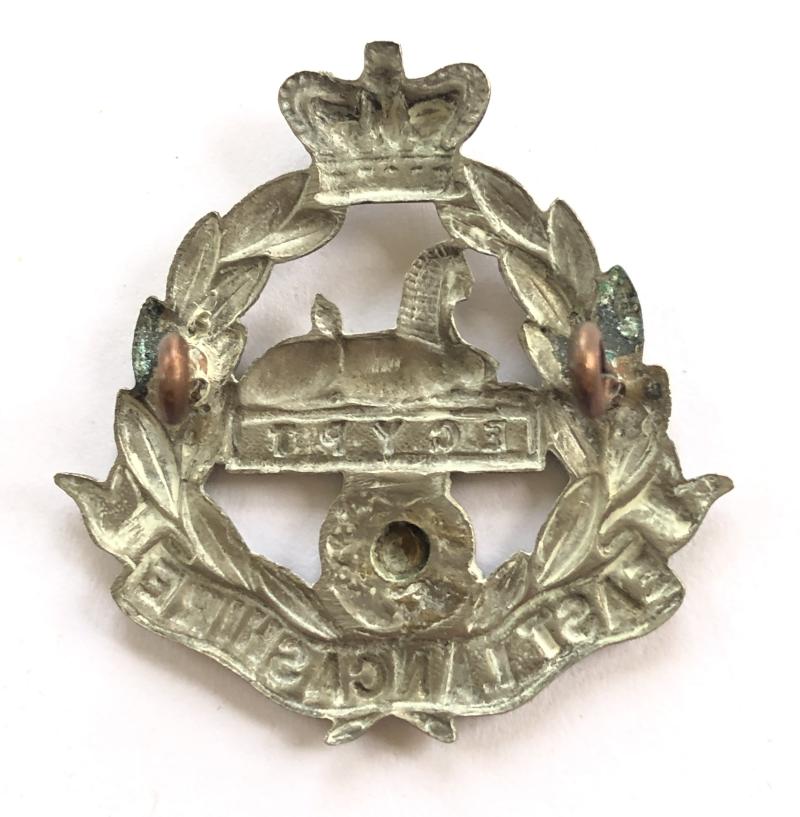 Good scarce die-stamped white metal crowned laurel sprays on title scroll; voided centre bearing Sphinx on EGYPT scroll over brass rose. Loops