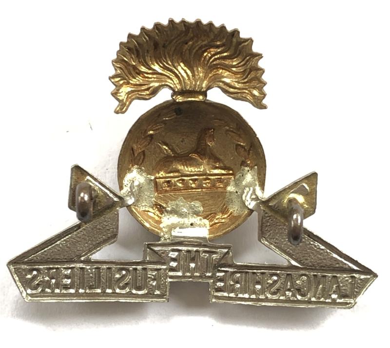Good scarce die-stamped brass flaming grenade on angular white metal title scroll; the domed ball bearing Sphinx resting on EGYPT tablet within laurel sprays. Toned loops