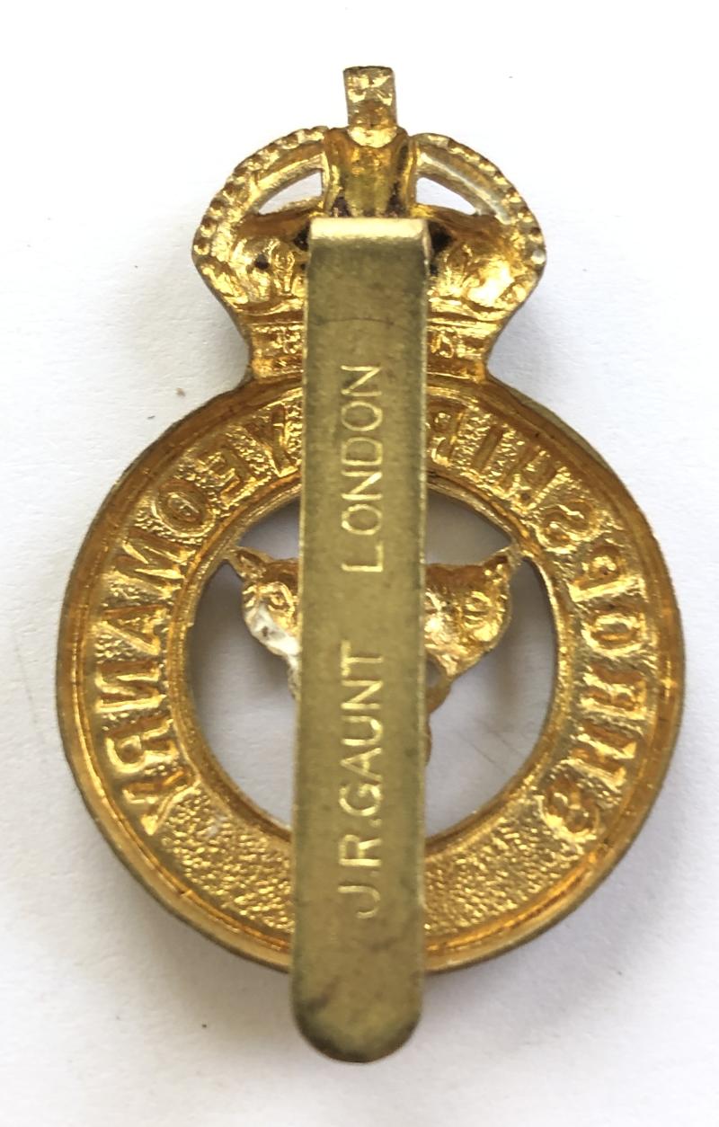 Good scarce short-lived die-stamped brass crowned title circlet; three loggerheads to voided centre. Named slider.