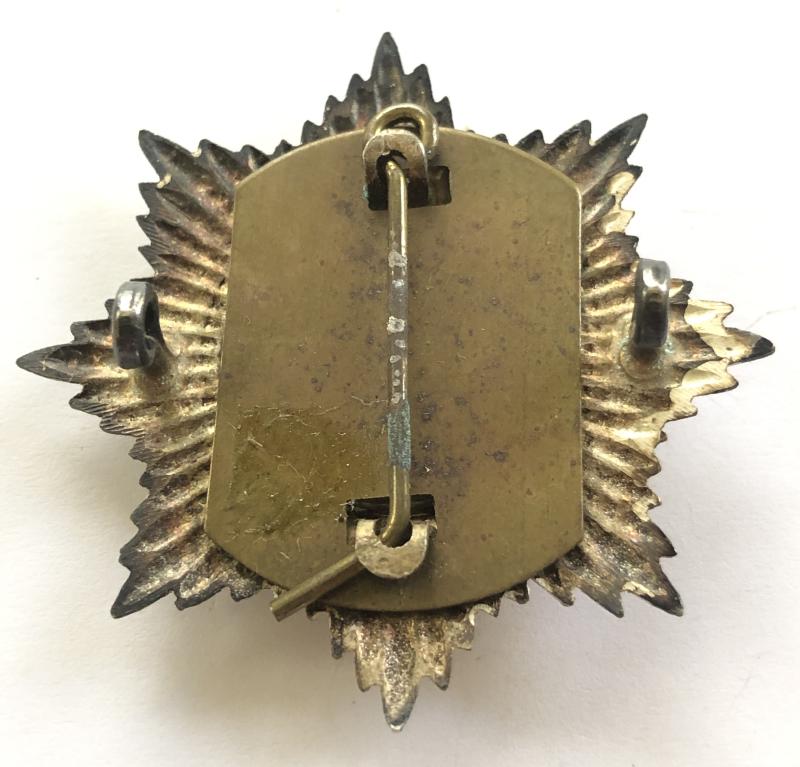 Fine scarce die-stamped frosted silver plated Garter star bearing Garter pierced with blue enamel ground, central Cross of St. George of translucent red enamel. Loops